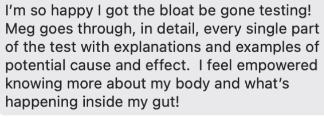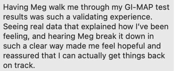 "I have suffered with stomach issues for 15 years I have seen countless doctors and others to get clarity and support and no one could truly help me until Meg... this is the best I can remember feeling" -Juliana